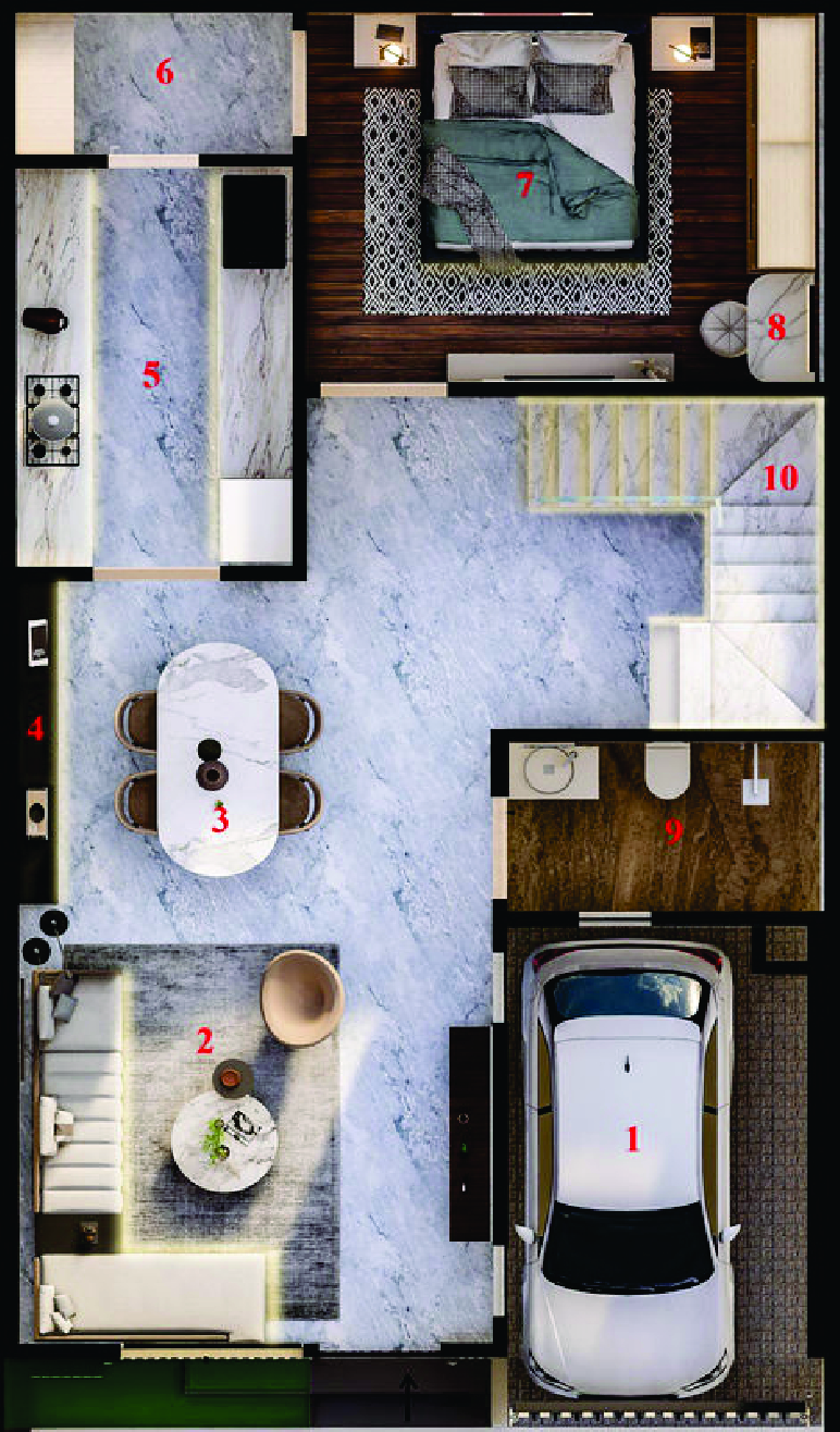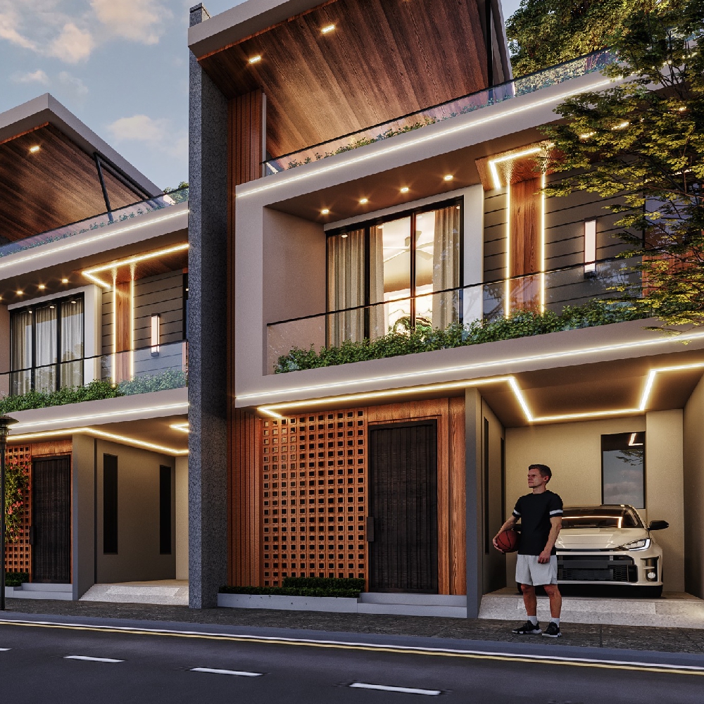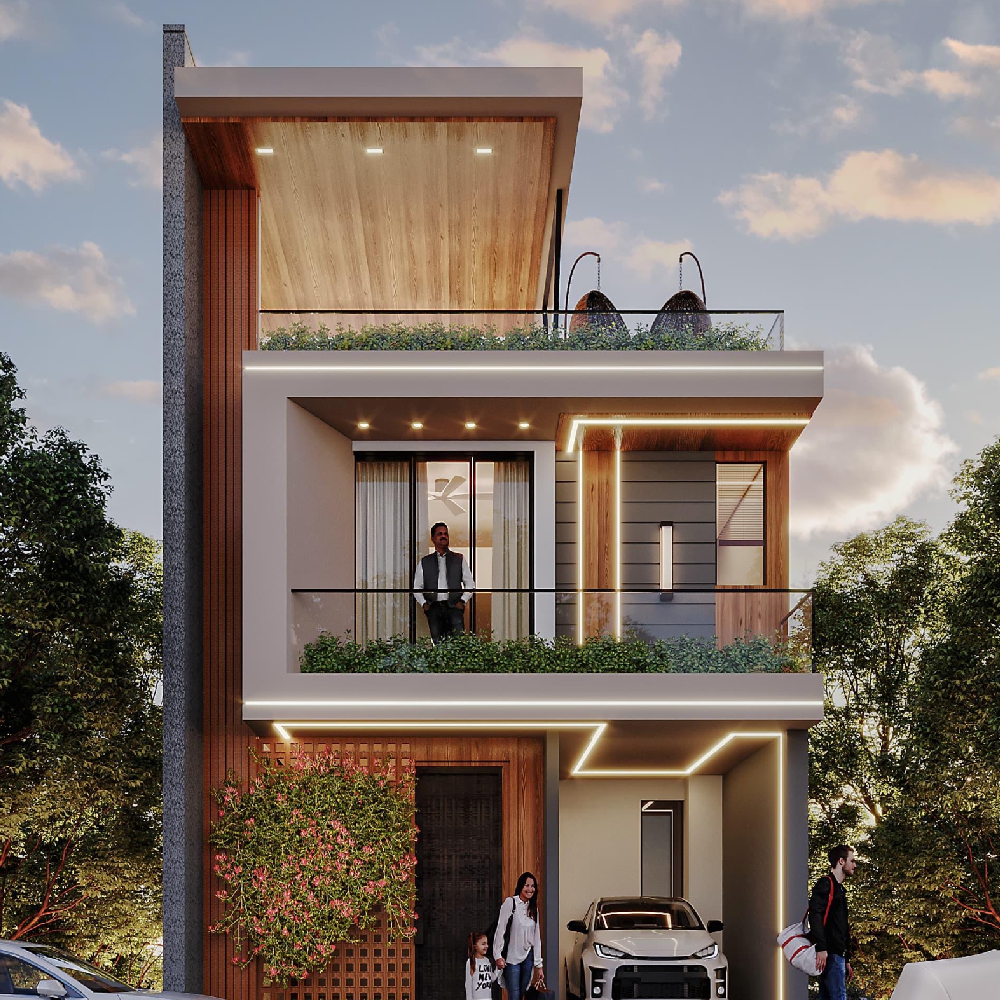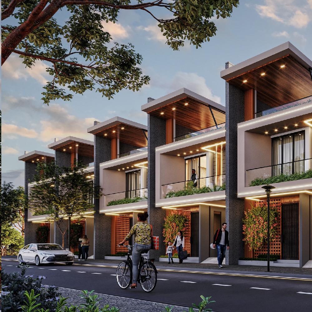 Green Villa-1 A modern, eco-friendly oasis blending contemporary style with nature,featuring a sleek modern façade, sustainable design, elements and harmonious natural connections, perfect for serene and luxurious living experience. It is perfect blend of culture and grandeur, richly designed to sere as a home to people looking for an escape from daily monotony of the rapid urbanization that seizes the real essence of living peacefully in home.